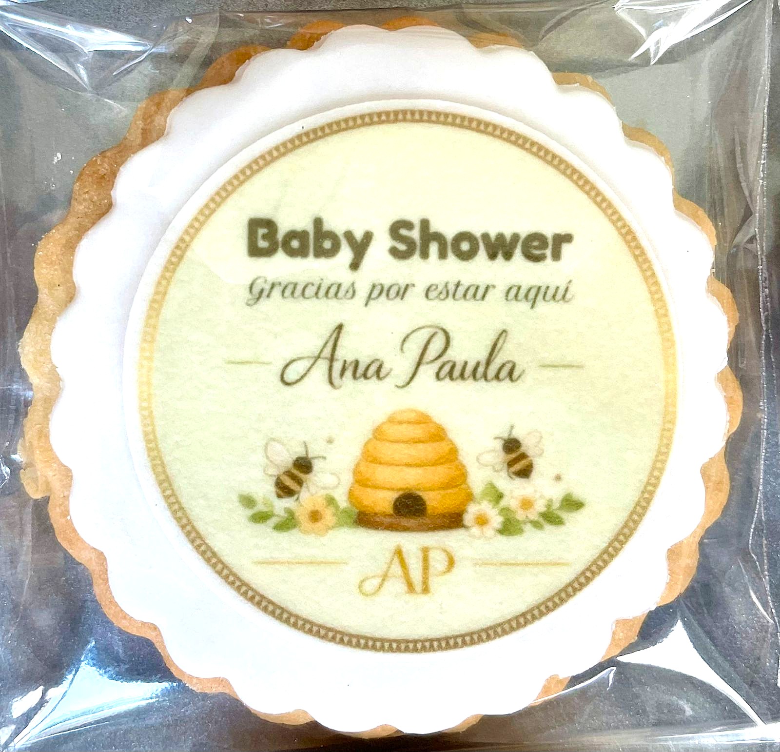 Las Galletas con foto comestible de Baby Shower permiten imprimir imágenes, nombres, fechas o ilustraciones temáticas directamente sobre papel de azúcar, utilizando tintas comestibles de alta calidad. Ya sea que elijas un diseño clásico en tonos pastel, una temática de ositos, elefantes o globos aerostáticos, estas galletas aportan un toque único y totalmente personalizado a tu celebración.